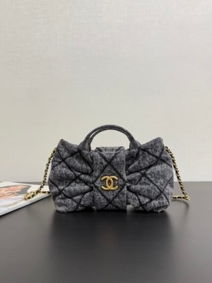 Chanel Genuine Leather 25K Bow Handbag, Small Denim Size, In Stock