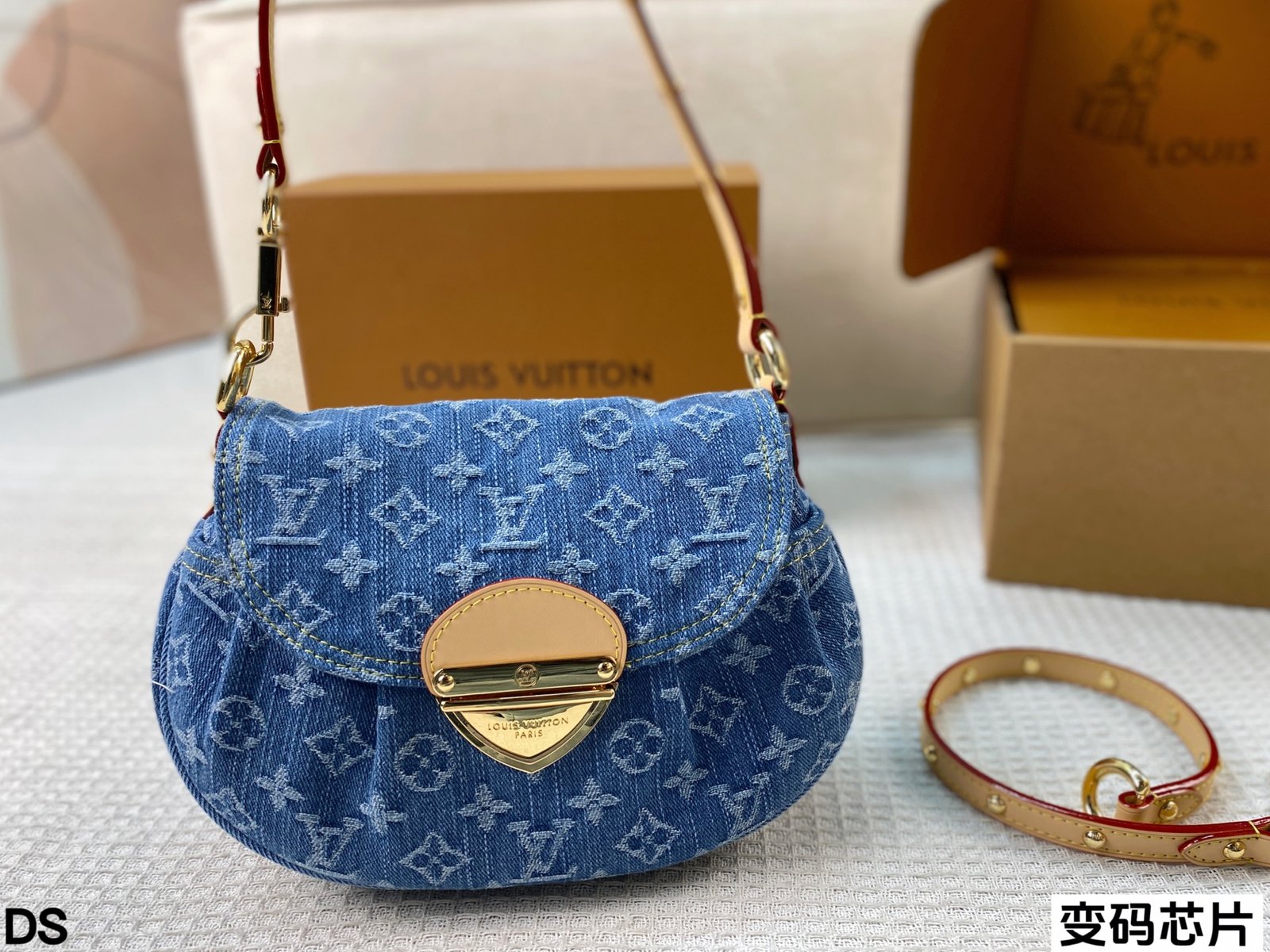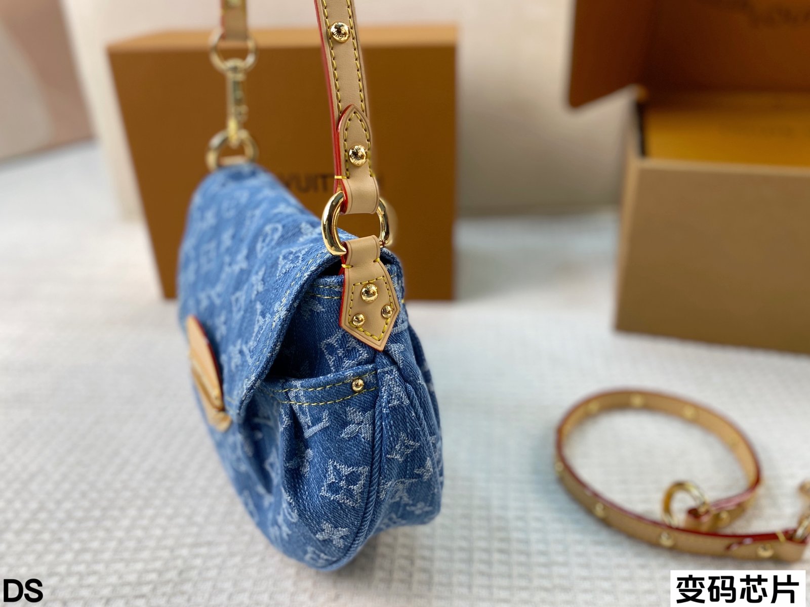 LV牛仔丹宁sunset真的好好看 别看它小小一个 容量真的很感人 背在腋下刚好 无论是休闲还是精致小女人都可以驾驭!尺寸:26*17(变码芯片)