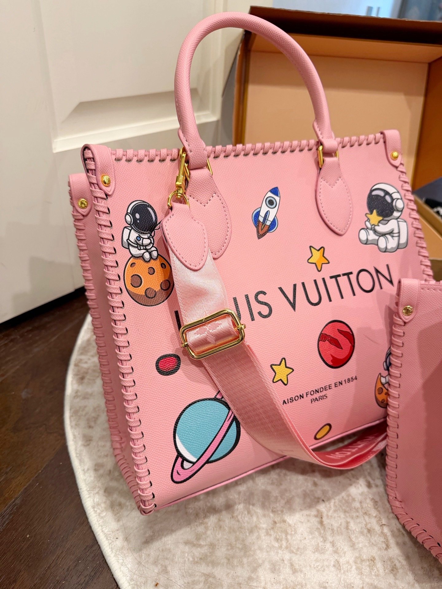 Lv 新款 Onthego 手袋 一眼就爱上购物袋🛍️ onthego 购物或周末出游 拎起 Onthego 手袋即刻出发 Mini Lv 新款 购物袋大花热压 最新爆款 官网同步 上身效果好 原版五金带logo 超级洋气 奢华高贵的象征 走秀款 人手一只 前卫摩登之感不言而喻 高端货 人手必备款 原版内里 尺寸:25cm/35cm